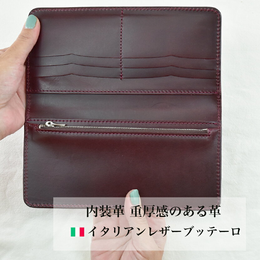 イタリアンレザー ブッテーロ×内装ブッテーロの二つ折り長財布本体カラー ブラック 外装・内装カラー・リボンはブッテーロ15色からお選びいただけます 革 イタリアンレザー ブッテーロ イタリア、トスカーナ地方にある老舗タンナー ワルピエの代表的な革ブッテーロは、エイジング(経年変化)の素晴らしさが魅力です。