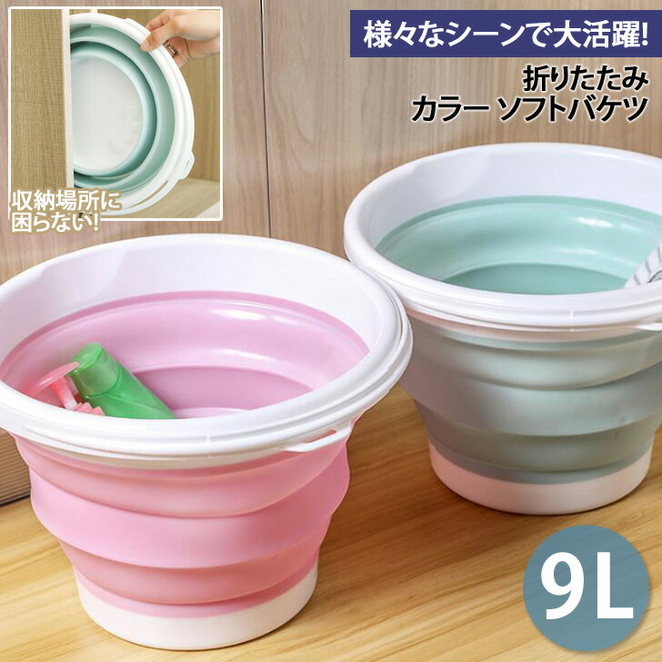折りたたみ カラー ソフトバケツ 9L 折りたたみバケツ シリコン製 折り畳み コンパクト 収納ボックス 大容量 掃除 洗車 釣り ガーデニング アウトドア キャンプ たらい 洗濯桶 つけ置き 洗い桶 おしゃれ