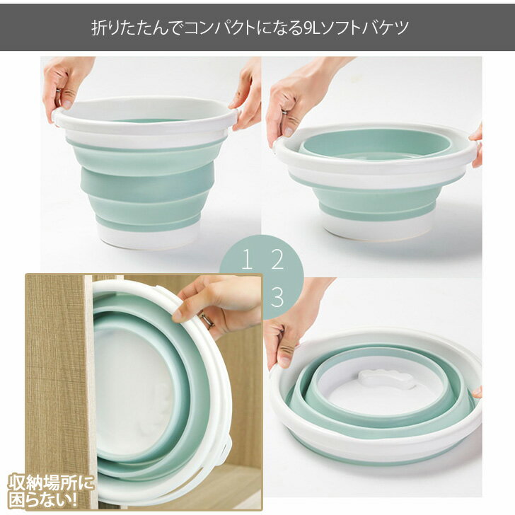 ●様々なシーンで大活躍!折りたたんでコンパクトになる9Lソフトバケツ ※生産・入荷時期により若干、色味や仕様が変更となる場合がございます。