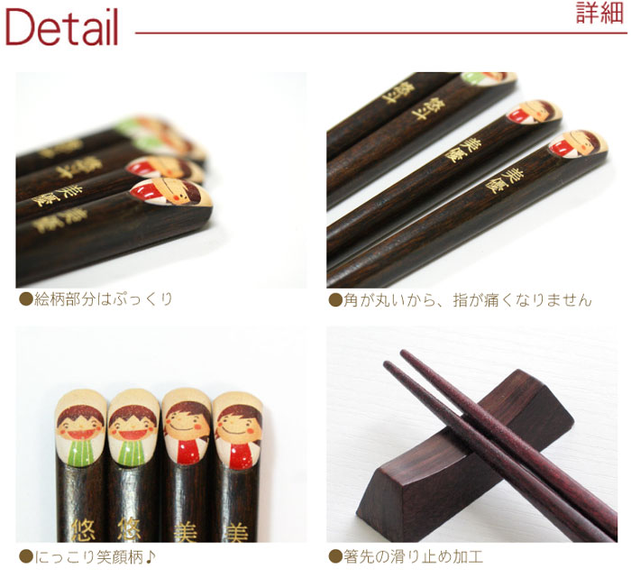 商品情報 【天然木 日本製 なかよし 家族箸 【子供用】 2膳 ペアセット 】 ニッコリ笑顔で食卓を明るく、滑り止め付きで使いやすい! 桐箱付きだから、 誕生日や入園、入学、進級、進学などの記念日ギフトとして◎ 若狭塗は小浜藩の御用塗師「松浦三十郎」が支那漆器の一種存星をヒントに、 海底の様子を意匠化して考え出したのがはじまり。